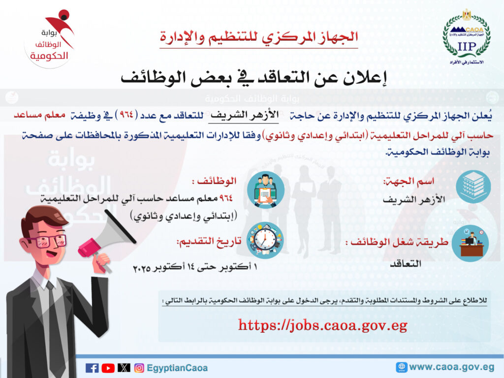 شاركها فيسبوك تويتر لينكدإن البريد الإلكتروني واتساب Threads Copy Link وظائف وظائف الأزهر وظائف الأزهر الشريف وظائف معلمين